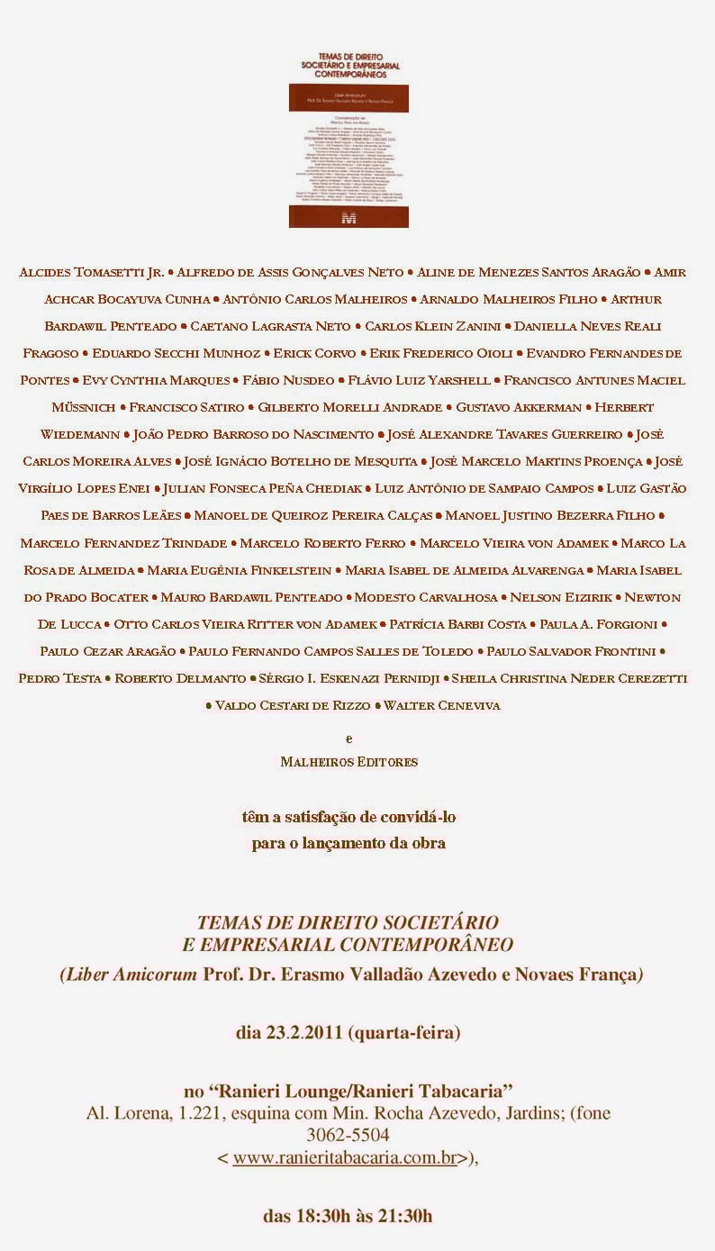 Lançamento da obra "Temas de Direito Societário e Empresarial Contemporâneos"