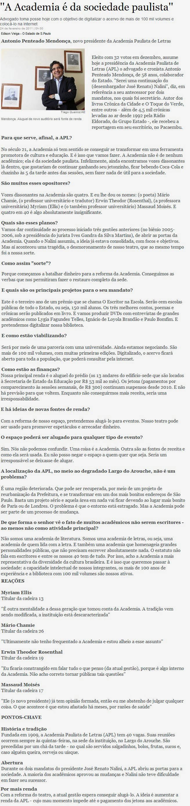 Nova diretoria da Academia Paulista de Letras toma posse hoje
