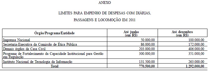 Portaria da Casa Civil limita despesas com diárias, passagens e locomoção