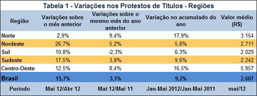Títulos protestados no Sudeste tiveram alta de 9,6% no início de 2012