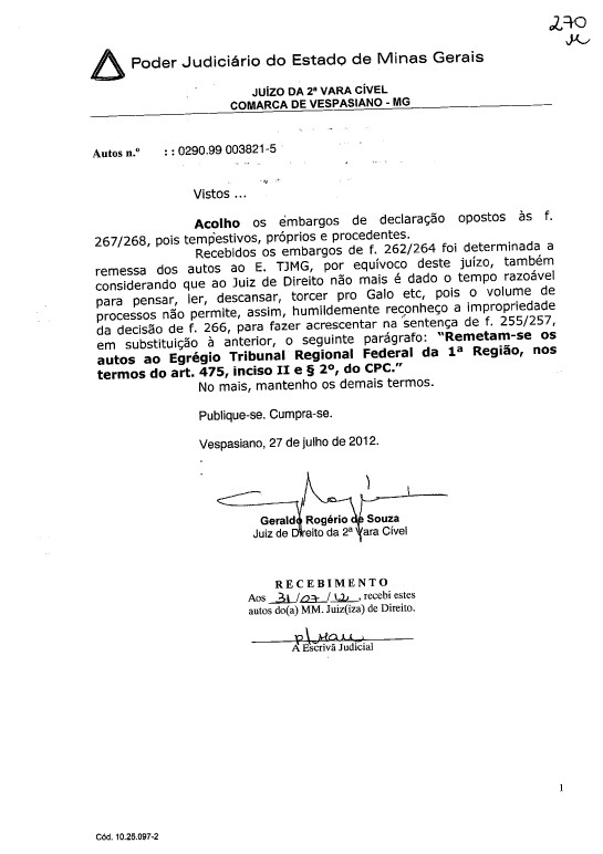 Juiz equivoca-se e manda para o TJ/MG processo que deveria ir ao TRF da 1ª região
