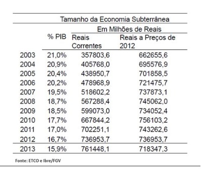 Índice de Economia Subterrânea atinge 15,9% em 2013