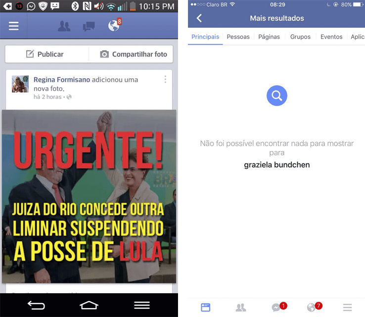 Calamandrei nos tempos do Facebook. Ontem, como se disse, pulularam ações contra a nomeação de Lula. Vejamos duas decisões diametralmente opostas, assim como suas prolatoras. Regina Coeli Formisano, no RJ, concedeu liminar contra a posse de Lula. Ato contínuo, postou uma imagem em sua página no Facebook nitidamente jactando-se do ato. Graziela Bündchen, no RS, negou a liminar contra a posse de Lula. Irmã da famosa modelo, ciosa da parcimônia que deve imperar na magistratura, prefere deixar os holofotes com a irmã e, como se pode ver, não tem perfil público na rede social.