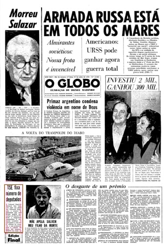 Há 46 anos, no dia 27 de julho de 1970, o TSE fixou, com base nos dados dos Tribunais Regionais, o número de deputados que cada Estado poderia preencher na Câmara Federal e nas respectivas Assembleias. (Clique aqui para ampliar)
