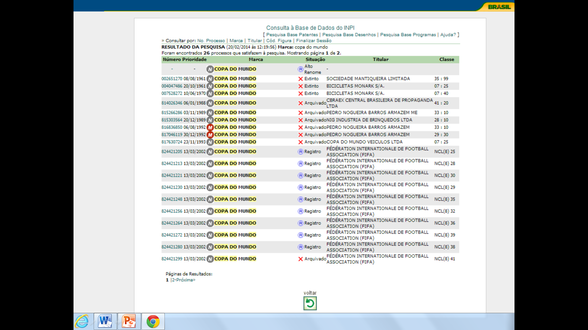 Entretanto, o INPI, paradoxalmente, concedeu o registro dessa marca à FIFA antes mesmo da vigência da LGC (e, portanto, antes da exceção legal nela prevista), conforme consta do respectivo banco de dados:2