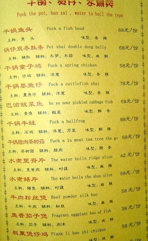Traduttore, traditore 13/5/2008 Wilson Silveira - CRUZEIRO/NEWMARC PROPRIEDADE INTELECTUAL "Um antigo ditado italiano diz ser o tradutor um traidor, o que significa que, não obstante os tradutores estejam, sempre, imbuídos dos mais sinceros propósitos de oferecer ao leitor um texto isento de vícios, incorreções e imprecisões, às vezes, há obstáculos intransponíveis, principalmente com relação a certos idiomas, com suas peculiaridades e ambigüidades, que resistem a todos os esforços do tradutor a adaptá-los a outros idiomas. É o que vem acontecendo, por exemplo, com os Jogos Olímpicos de Pequim, cujos responsáveis se vêem obrigados a rever o nome de mais de 2.753 pratos da culinária chinesa que, na tradução para o inglês e para outros idiomas acabaram com nomes curiosos e muito pouco palatáveis. 'Chinese dishes get English names ahead of Olympics (Xinhua) Updated: 2007-08-31 14:57 BEIJING, August 31 - Foreigners will find it easier to order a meal in Beijing during the Olympics as most dishes and drinks will have proper English translations. The MapoTofu Beijing Tourism Bureau has released a list of translations for 2,753 dishes and drinks to solicit public opinions. The list, once finally fixed, will be used in restaurants across the country, to replace confusing, even ridiculous translations, according to the bureau. In preparing for the 2008 Olympic Games, the city has also moved to standardize English translations of public facilities, including road signs, and the hotel service. Bad translations of Chinese dishes are headaches for foreign epicures. There used to be translations like "Virgin Chicken" and "Burnt Lion's Head", which are actually dishes based on young chicken and pork ball resembling lion's head. These translations either scare or embarrass foreign customers and may cause misunderstanding on China's diet habits. A team set up by the Beijing Municipal Foreign Affairs Office and Beijing Tourism Bureau has been working on the problem since March last year, backed by a committee of 20 language experts and catering service managers. "The names of Chinese dishes have long been part of our culture. We should translate them in a way that people of other cultures can understand them," said Feng Dongming, the head of this translation program and vice dean of Tourism School of Beijing Union University. The names of Chinese dishes have combined cultural and artistic elements in them, some with historical, geographical and political background, some with origins from Chinese fairy tales and folk tales. Often the dishes are named with stories understood only by people who know their culture well. Translators have divided the dish names into four catalogues: named by materials, by cooking method, by tastes, by name of a person or a place. Translation of the first type is done simply by linking the the name of each material with a hyphen. For instance, "Mushroom-Duck's Foot" and "AmentJuice-BalsamPear", which helps foreign guests to recognize the materials and content of the dish. The second type is translated according to cooking methods. Some Chinese cooking methods are unique and do not exist in other countries, like stew, quick-fry or saute, braise, and chilioil-boil. The translators now put the method in the beginning, followed by the material, forming a verb-noun phrase. For instance, "Stewed Diced Pork and Sweet Potatoes" and "Fish Filets in Hot Chilioil". The third type begins with the taste or texture of the food. For example, "Crispy Chicken". The last type is named after either its creator or the place it originates from. Such examples include "MapoTofu", which is a kind of Tofu invented by Mapo, name of a Chinese woman. The committee also plans to launch a training program to equip waiters and waitresses with knowledge of the dish names in case customers demand explanations.' O artigo acima, todavia, não menciona certos pratos tradicionais que, traduzidos, ficaram verdadeiramente 'incomíveis', como o 'fried crap' ou fezes fritas, que aqui no Brasil não se comem nem cozidas. Ou, ainda, o 'corrugated iron beef', que poderia ser traduzido por bife de ferro ondulado, ou o 'cow bowel in sauce', que nada mais seria que o saboroso intestino de vaca no molho. Lá, durante os jogos, a não ser que mudem os nomes, você poderá provar 'acid food', comida ácida, pelo que será bom levar uma certa quantidade de anti-ácidos. Mas, será difícil ter coragem para experimentar 'merda sobre a erva' ou o 'tofu cozido por uma mulher com a cara cheia de espinhas', ou a 'cabeça do leão queimado' (e não é o Mate leão). Se, por acaso, seu time ganhar, será um bom motivo para pedir 'as quatro almôndegas alegres'. Se você encontrar em um cardápio 'Tong ziji', cuidado, pois o nome do prato pode ser traduzido por frango jovem assado, frango virgem ou, ainda, 'frango sem vida sexual', o que não dá bem para entender. Aqui em São Paulo, fui levado por um de meus irmãos a um restaurante chinês de sua predileção e aceitei sua sugestão de iniciar a refeição com uma 'sopa de trovão'. Por via das dúvidas, ao chegar em casa, antes de dormir, tomei duas cápsulas de Luftal. Mas, de qualquer forma, jamais arrisquei pedir 'formigas que escalam árvores'. Aliás, minha dieta, por ordens médicas, é no sentido de evitar formigas e outros insetos. Olhe que dureza entender o exato significado da palavra 'fuck' no cardápio abaixo, de um restaurante da China. Assim, se você vai para Pequim, para os Jogos, e pretende comer em restaurantes chineses, é melhor ter algumas aulas antes, porque senão vai ser difícil contentar seu estômago. Ou ainda, vai ter que ter estômago." Envie sua Migalha