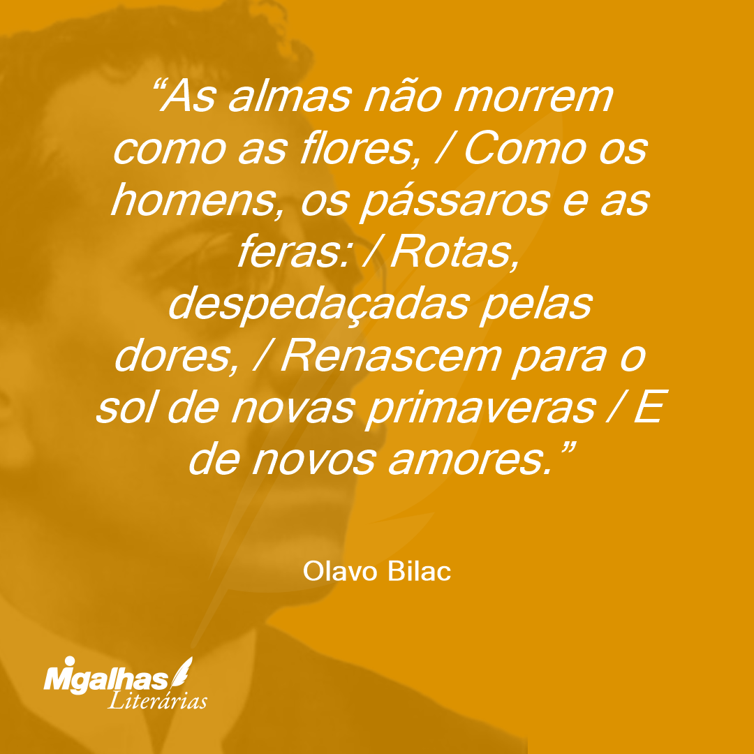 As almas não morrem como as flores, / Como os homens, os pássaros e as feras: / Rotas, despedaçadas pelas dores, / Renascem para o sol de novas primaveras / E de novos amores.