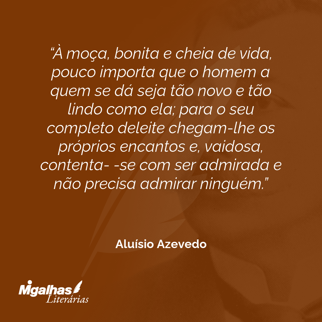 À moça, bonita e cheia de vida, pouco importa que o homem a quem se dá seja tão novo e tão lindo como ela; para o seu completo deleite chegam-lhe os próprios encantos e, vaidosa, contenta- -se com ser admirada e não precisa admirar ninguém.