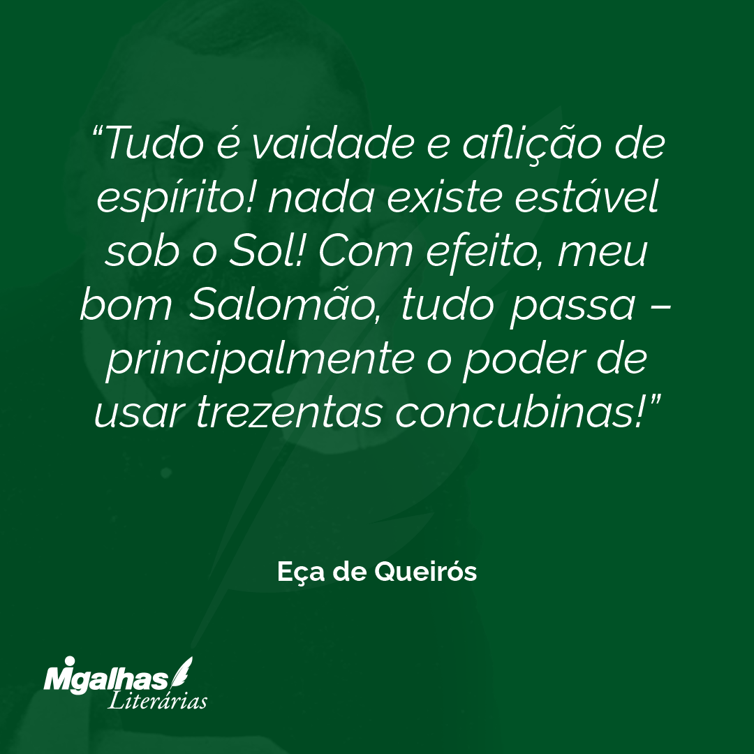 Tudo é vaidade e aflição de espírito! nada existe estável sob o Sol! Com efeito, meu bom Salomão, tudo passa – principalmente o poder de usar trezentas concubinas!
