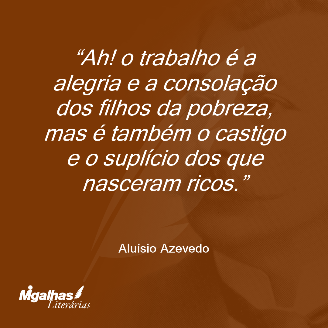 Ah! o trabalho é a alegria e a consolação dos filhos da pobreza, mas é também o castigo e o suplício dos que nasceram ricos.