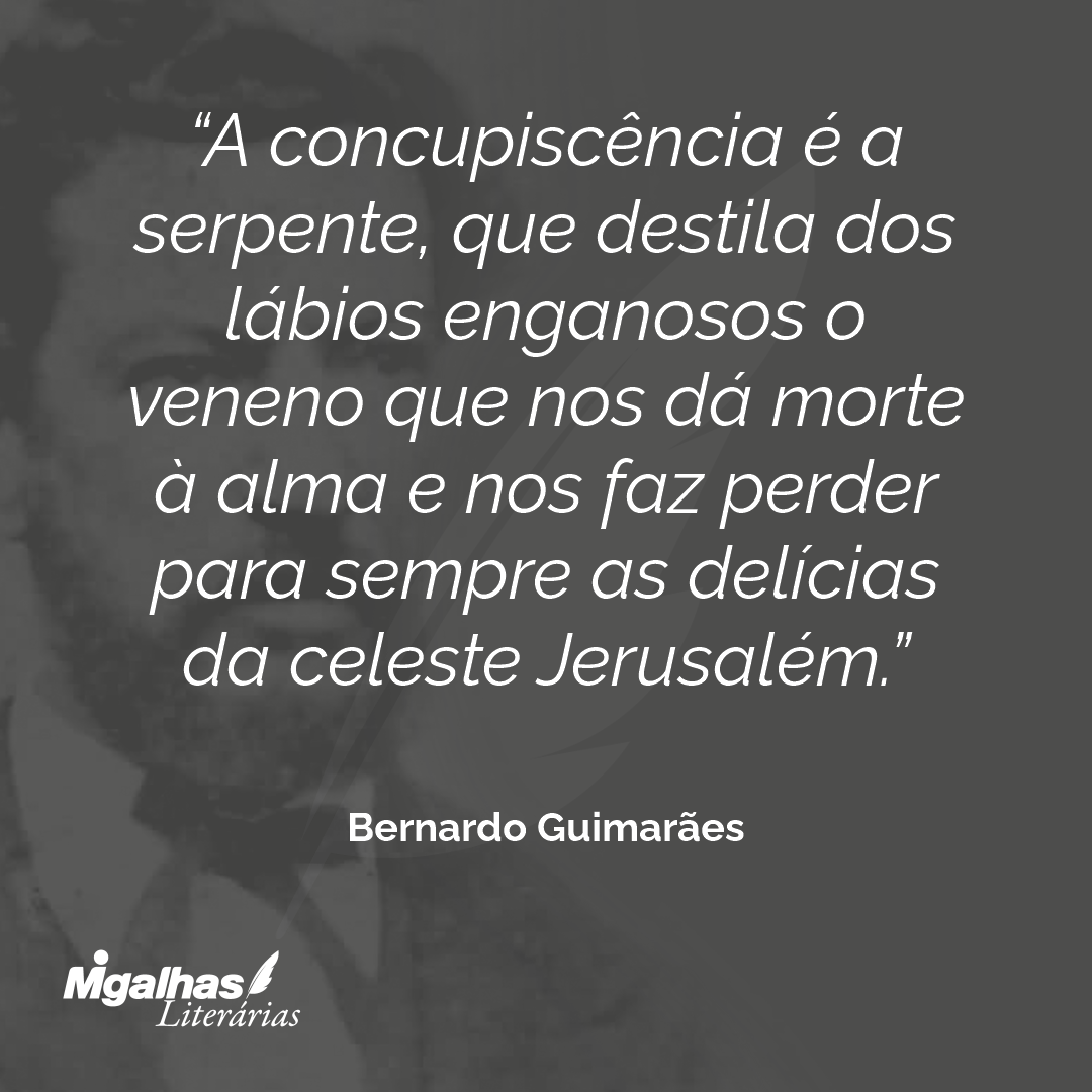 A concupiscência é a serpente, que destila dos lábios enganosos o veneno que nos dá morte à alma e nos faz perder para sempre as delícias da celeste Jerusalém.