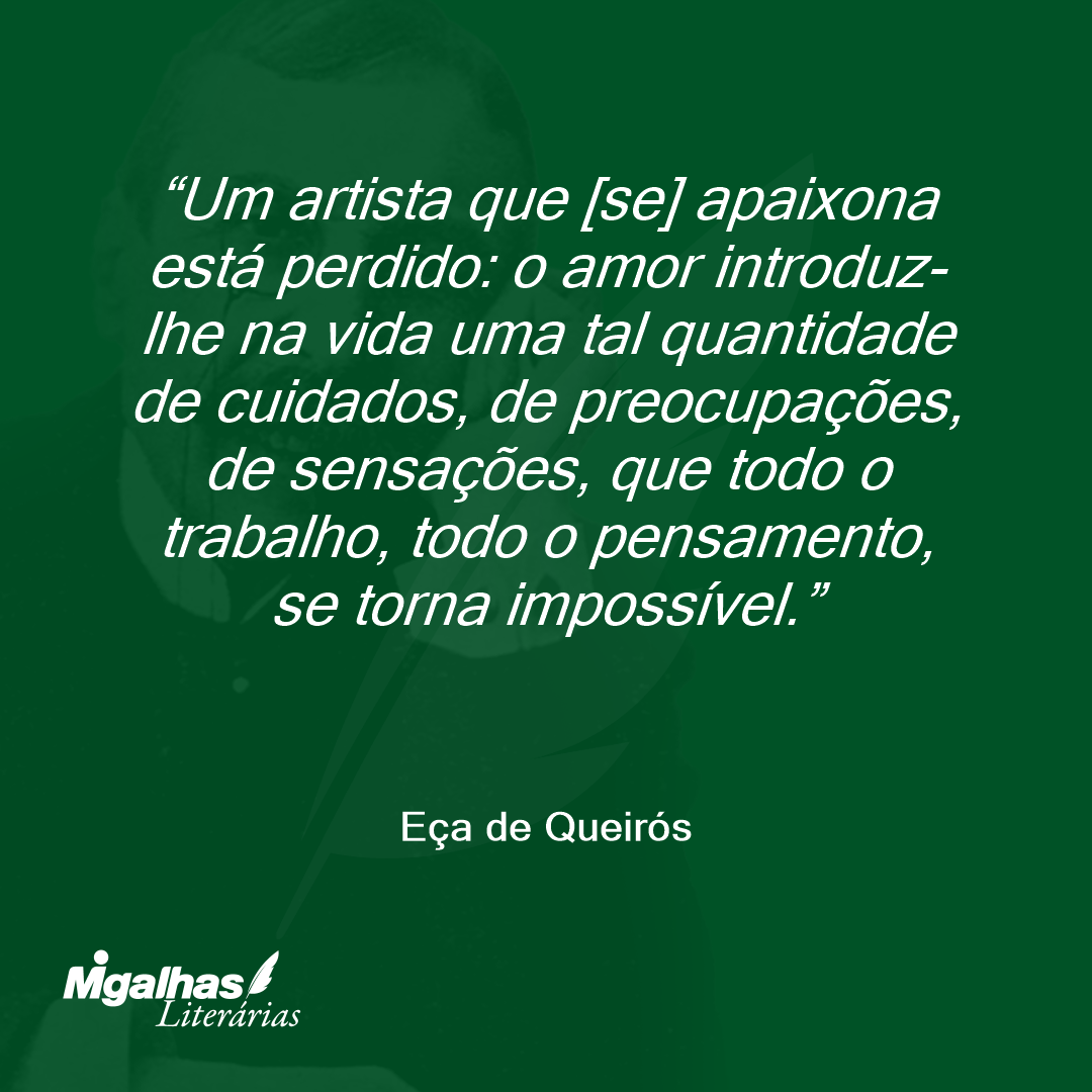 Um artista que [se] apaixona está perdido: o amor introduz-lhe na vida uma tal quantidade de cuidados, de preocupações, de sensações, que todo o trabalho, todo o pensamento, se torna impossível.