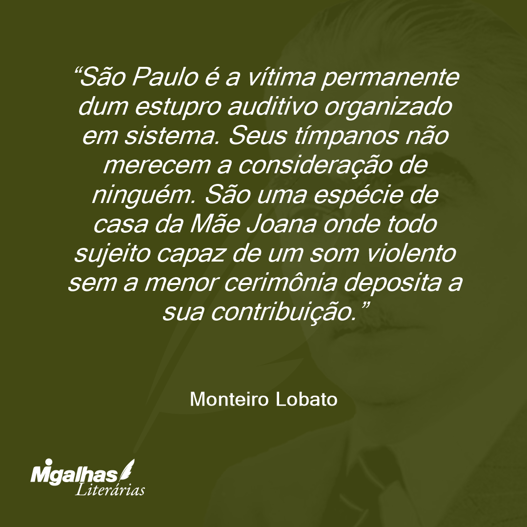 São Paulo é a vítima permanente dum estupro auditivo organizado em sistema. Seus tímpanos não merecem a consideração de ninguém. São uma espécie de casa da Mãe Joana onde todo sujeito capaz de um som violento sem a menor cerimônia deposita a sua contribuição.