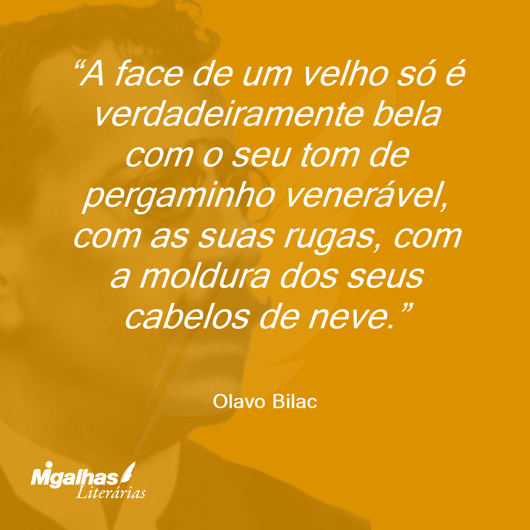 A face de um velho só é verdadeiramente bela com o seu tom de pergaminho venerável, com as suas rugas, com a moldura dos seus cabelos de neve.