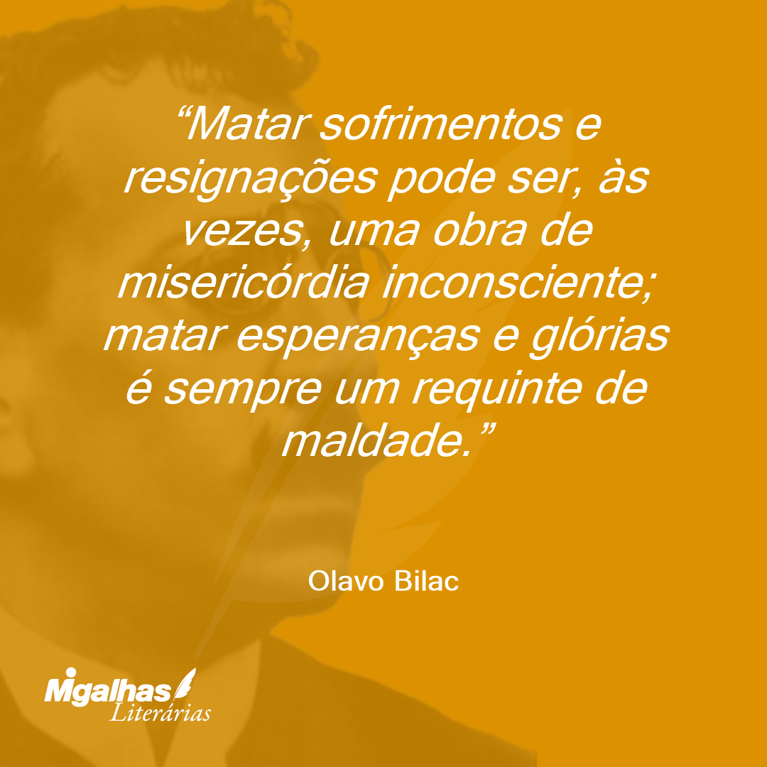 Matar sofrimentos e resignações pode ser, às vezes, uma obra de misericórdia inconsciente; matar esperanças e glórias é sempre um requinte de maldade.