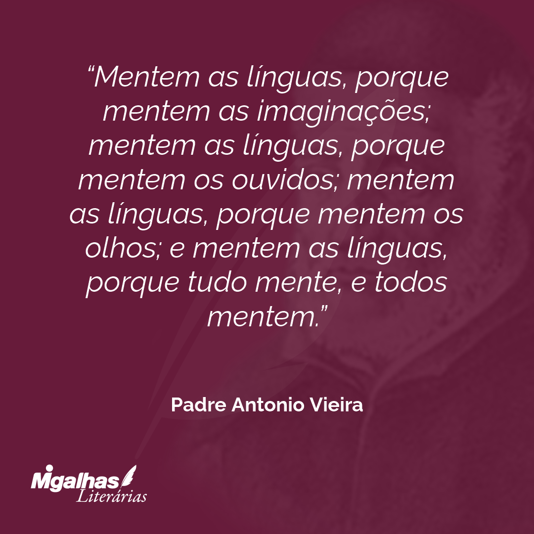 Mentem as línguas, porque mentem as imaginações; mentem as línguas, porque mentem os ouvidos; mentem as línguas, porque mentem os olhos; e mentem as línguas, porque tudo mente, e todos mentem.