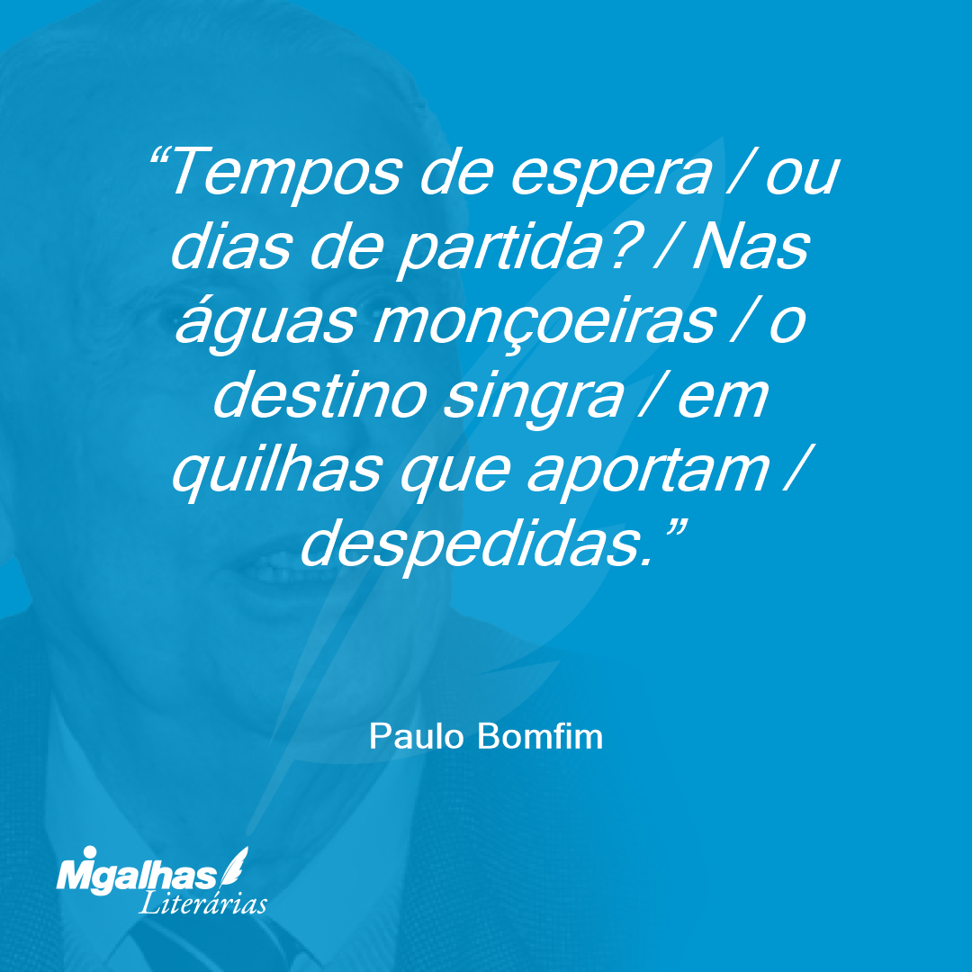 Tempos de espera / ou dias de partida? / Nas águas monçoeiras / o destino singra / em quilhas que aportam / despedidas.