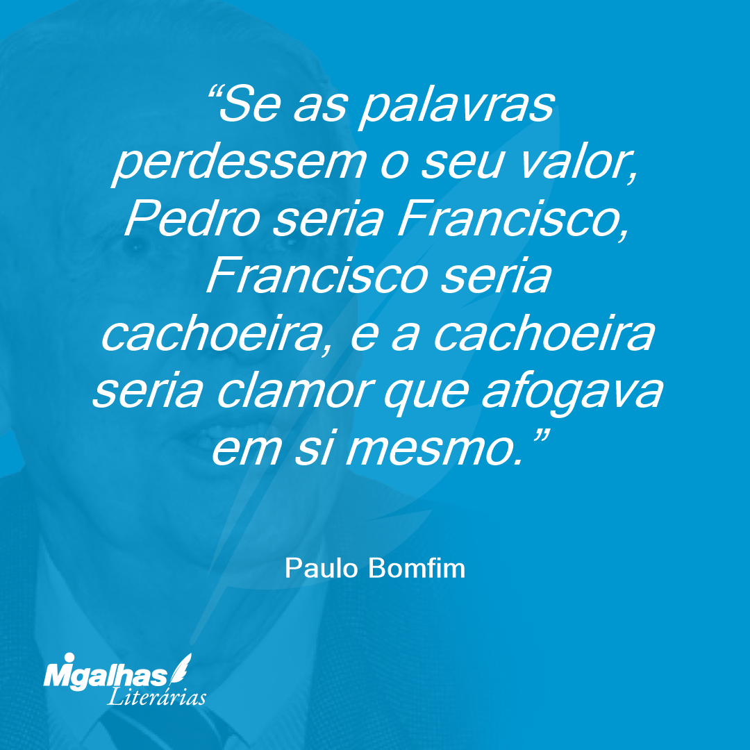 Se as palavras perdessem o seu valor, Pedro seria Francisco, Francisco seria cachoeira, e a cachoeira seria clamor que afogava em si mesmo.