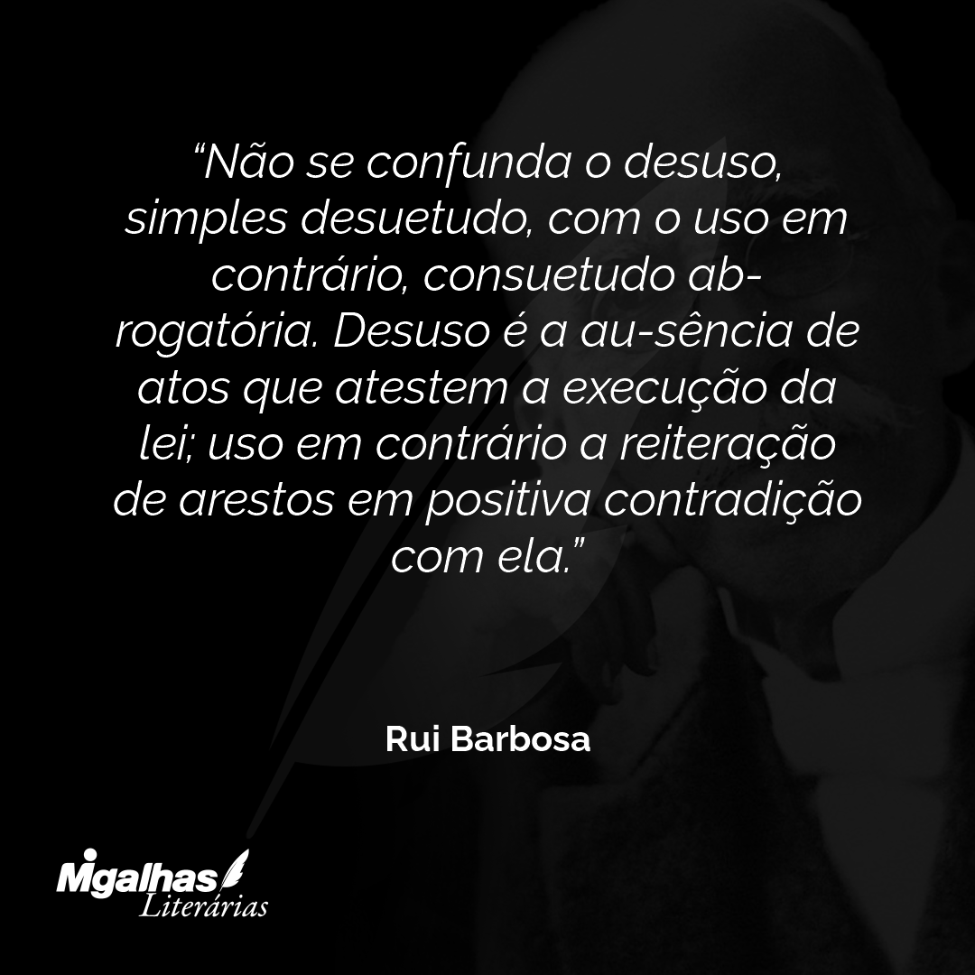 Não se confunda o desuso, simples desuetudo, com o uso em contrário, consuetudo ab-rogatória. Desuso é a au-sência de atos que atestem a execução da lei; uso em contrário a reiteração de arestos em positiva contradição com ela.