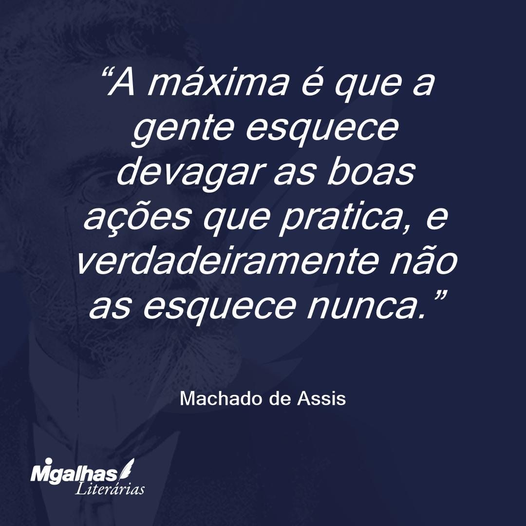 A máxima é que a gente esquece devagar as boas ações que pratica, e verdadeiramente não as esquece nunca.