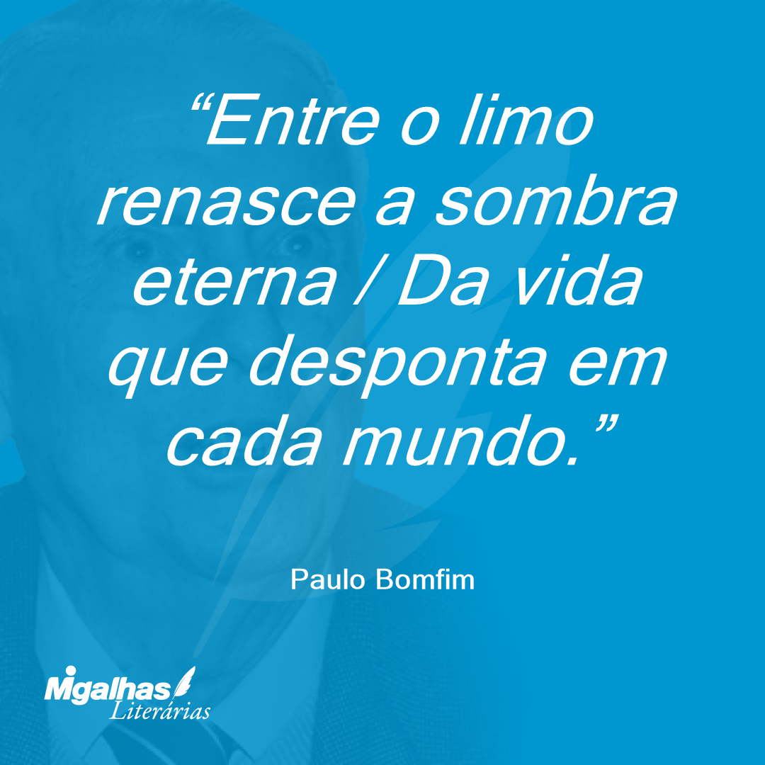 Entre o limo renasce a sombra eterna / Da vida que desponta em cada mundo.