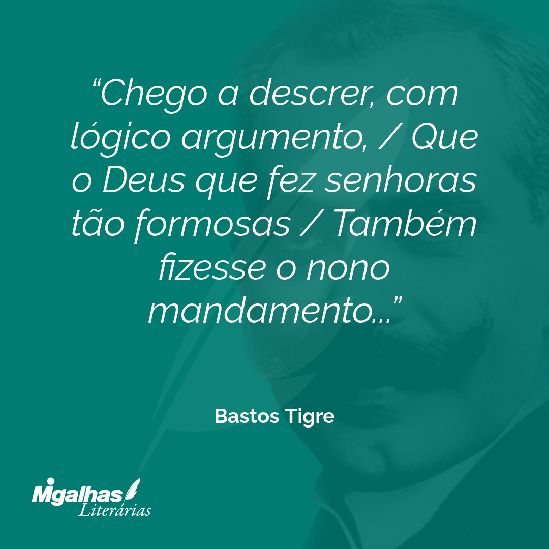 Chego a descrer, com lógico argumento, / Que o Deus que fez senhoras tão formosas / Também fizesse o nono mandamento...