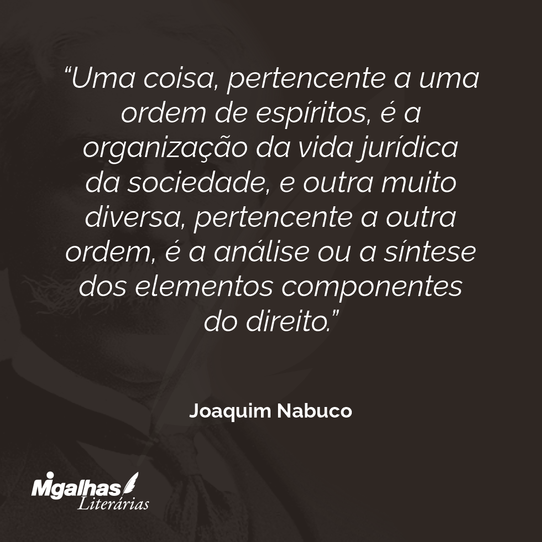 Uma coisa, pertencente a uma ordem de espíritos, é a organização da vida jurídica da sociedade, e outra muito diversa, pertencente a outra ordem, é a análise ou a síntese dos elementos componentes do direito.