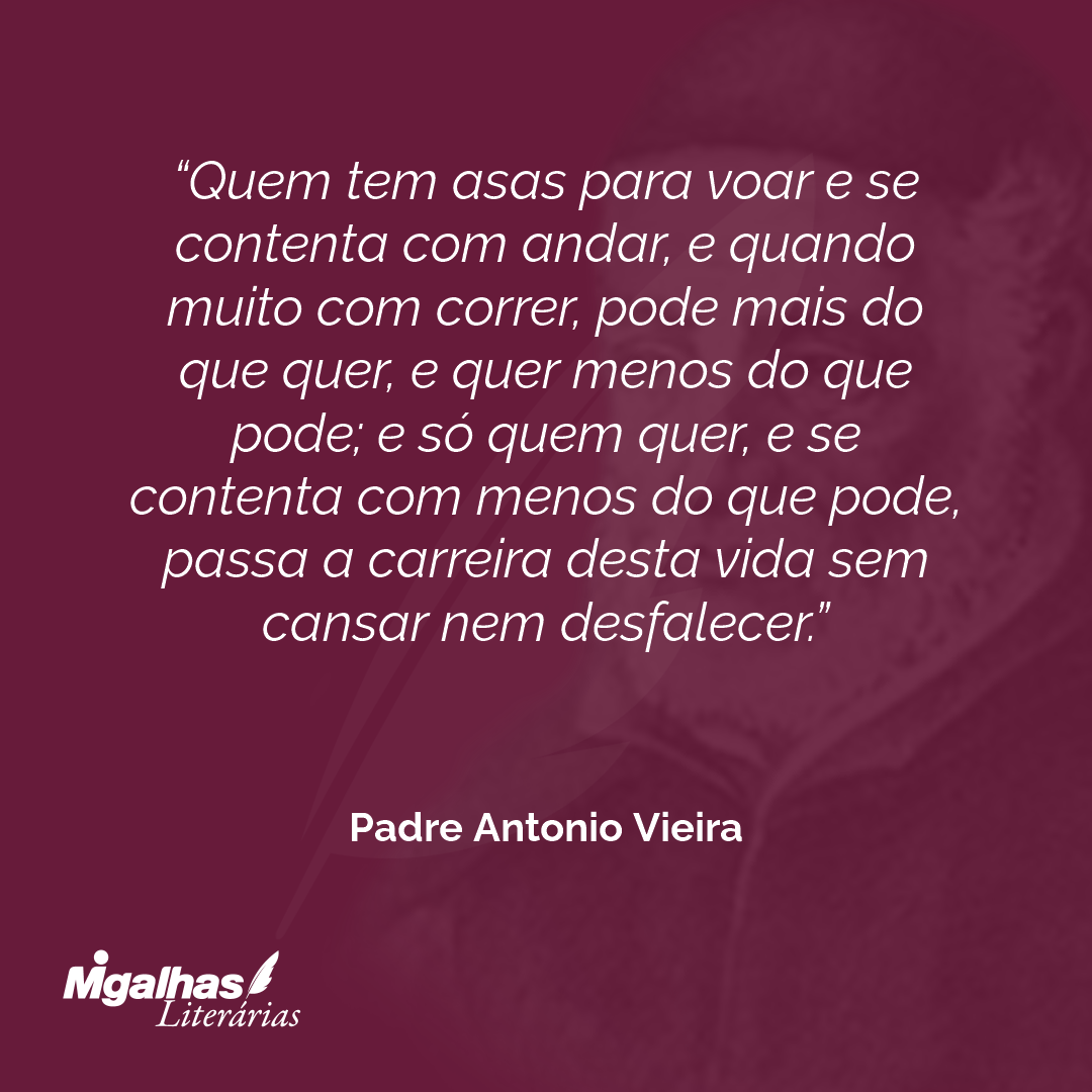 Quem tem asas para voar e se contenta com andar, e quando muito com correr, pode mais do que quer, e quer menos do que pode; e só quem quer, e se contenta com menos do que pode, passa a carreira desta vida sem cansar nem desfalecer.