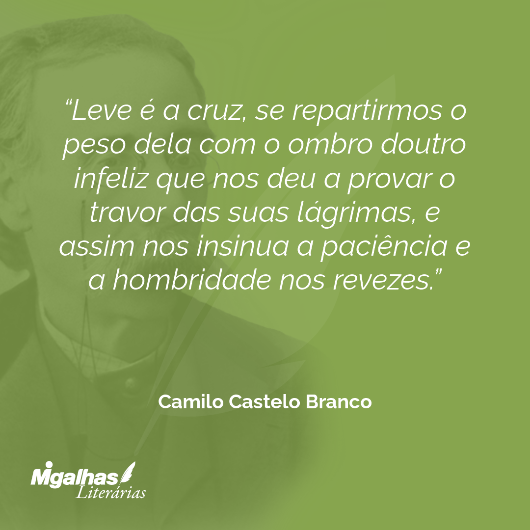 Leve é a cruz, se repartirmos o peso dela com o ombro doutro infeliz que nos deu a provar o travor das suas lágrimas, e assim nos insinua a paciência e a hombridade nos revezes.