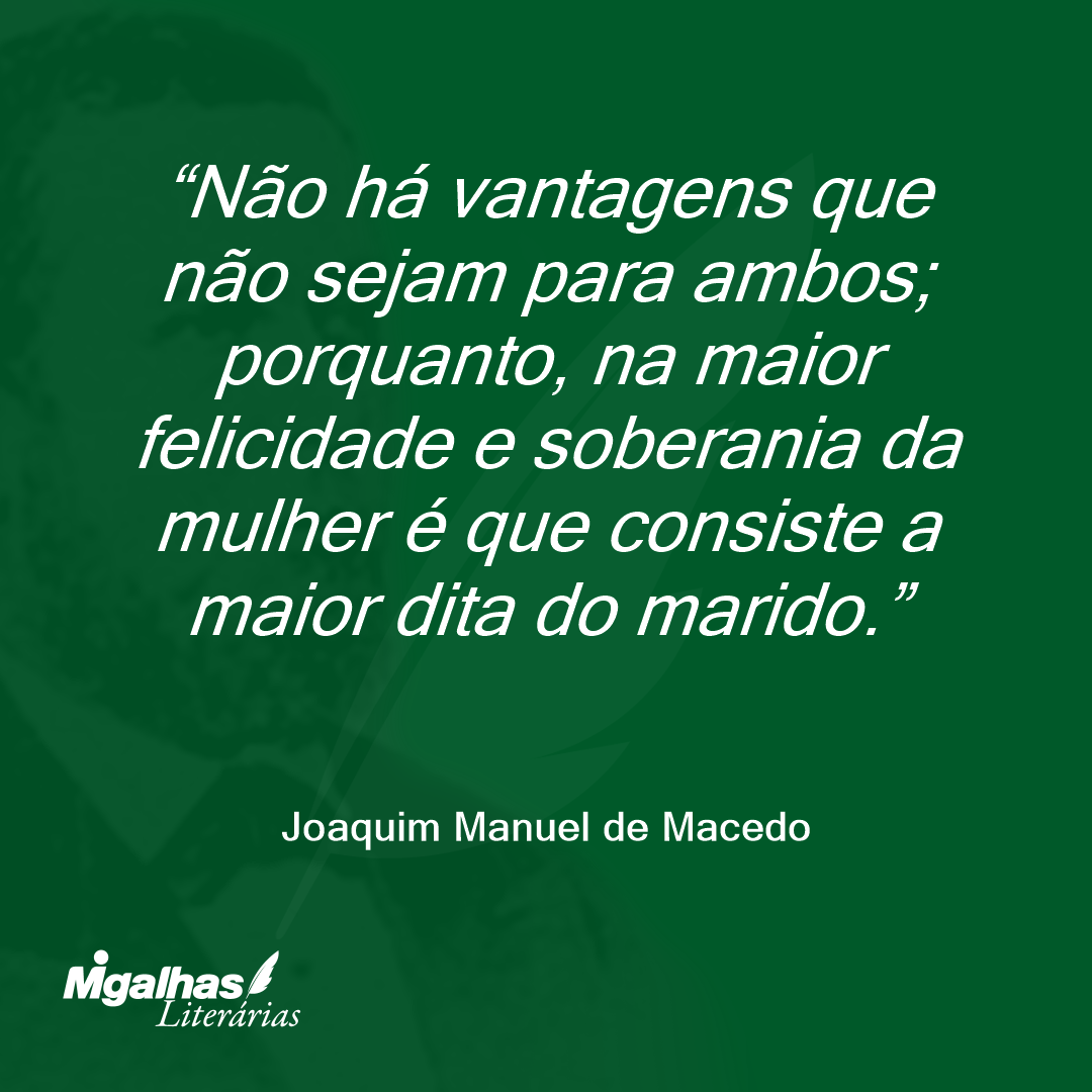 Não há vantagens que não sejam para ambos; porquanto, na maior felicidade e soberania da mulher é que consiste a maior dita do marido.