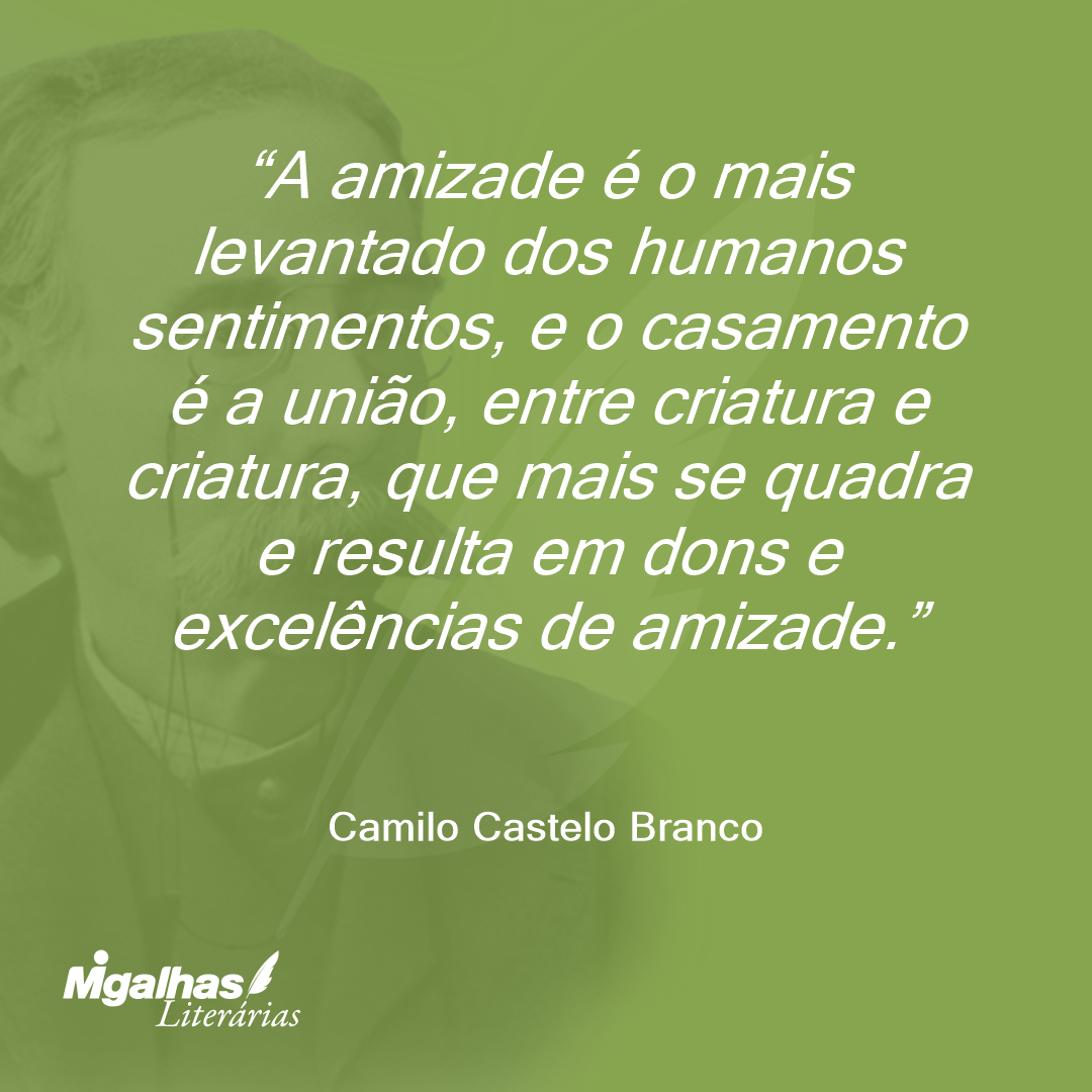 A amizade é o mais levantado dos humanos sentimentos, e o casamento é a união, entre criatura e criatura, que mais se quadra e resulta em dons e excelências de amizade.