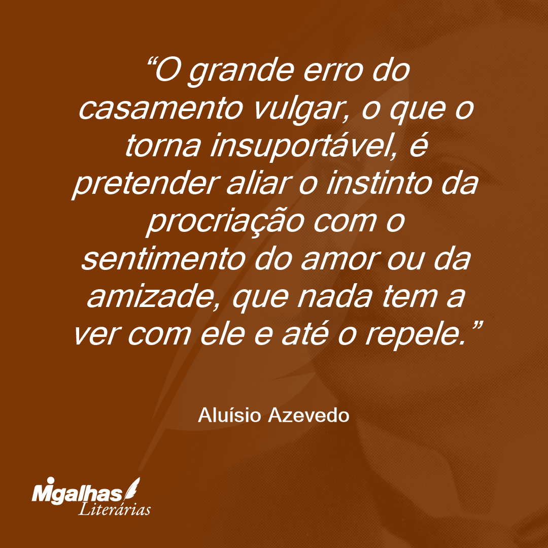 O grande erro do casamento vulgar, o que o torna insuportável, é pretender aliar o instinto da procriação com o sentimento do amor ou da amizade, que nada tem a ver com ele e até o repele.
