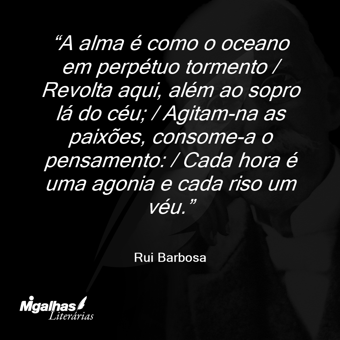 A alma é como o oceano em perpétuo tormento / Revolta aqui, além ao sopro lá do céu; / Agitam-na as paixões, consome-a o pensamento: / Cada hora é uma agonia e cada riso um véu.
