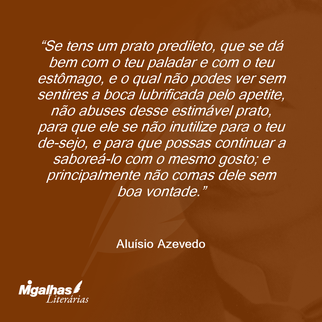 Se tens um prato predileto, que se dá bem com o teu paladar e com o teu estômago, e o qual não podes ver sem sentires a boca lubrificada pelo apetite, não abuses desse estimável prato, para que ele se não inutilize para o teu de-sejo, e para que possas continuar a saboreá-lo com o mesmo gosto; e principalmente não comas dele sem boa vontade.