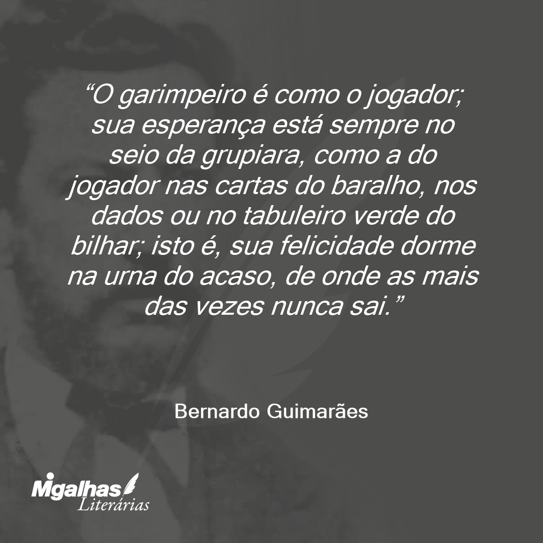 O garimpeiro é como o jogador; sua esperança está sempre no seio da grupiara, como a do jogador nas cartas do baralho, nos dados ou no tabuleiro verde do bilhar; isto é, sua felicidade dorme na urna do acaso, de onde as mais das vezes nunca sai.