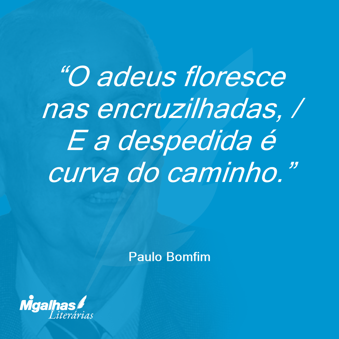 O adeus floresce nas encruzilhadas, / E a despedida é curva do caminho.