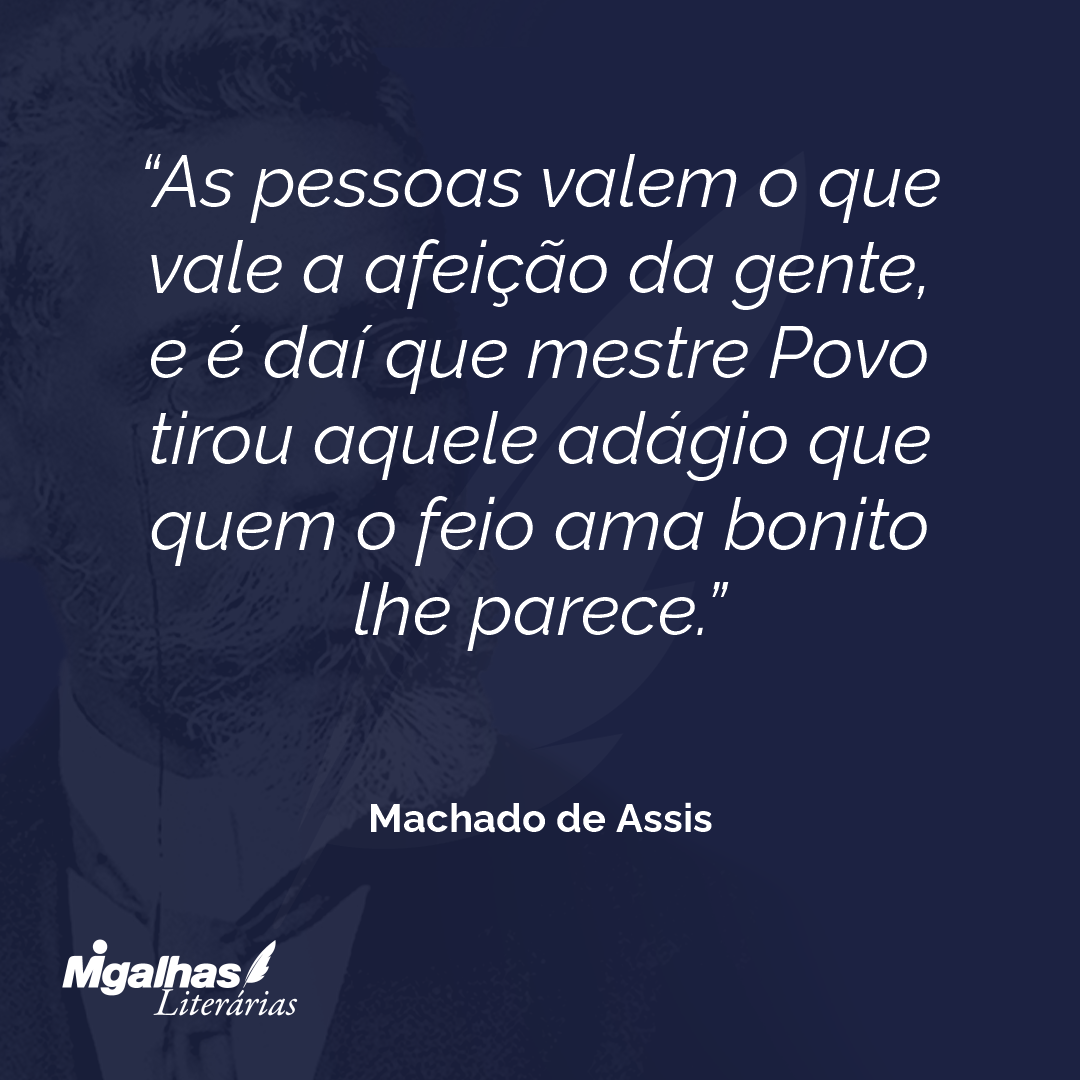 As pessoas valem o que vale a afeição da gente, e é daí que mestre Povo tirou aquele adágio que quem o feio ama bonito lhe parece.