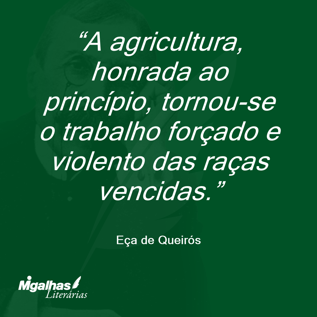 Favorecer a exportação, animar a atitude esmagadora e soberana que a indústria tem tomado, é fazer uma raça miserável que cai nos proletariados, quando se podia fazer uma robusta raça de homens sóbrios, rudes trabalhadores, fortes e honestos – pela agricultura.