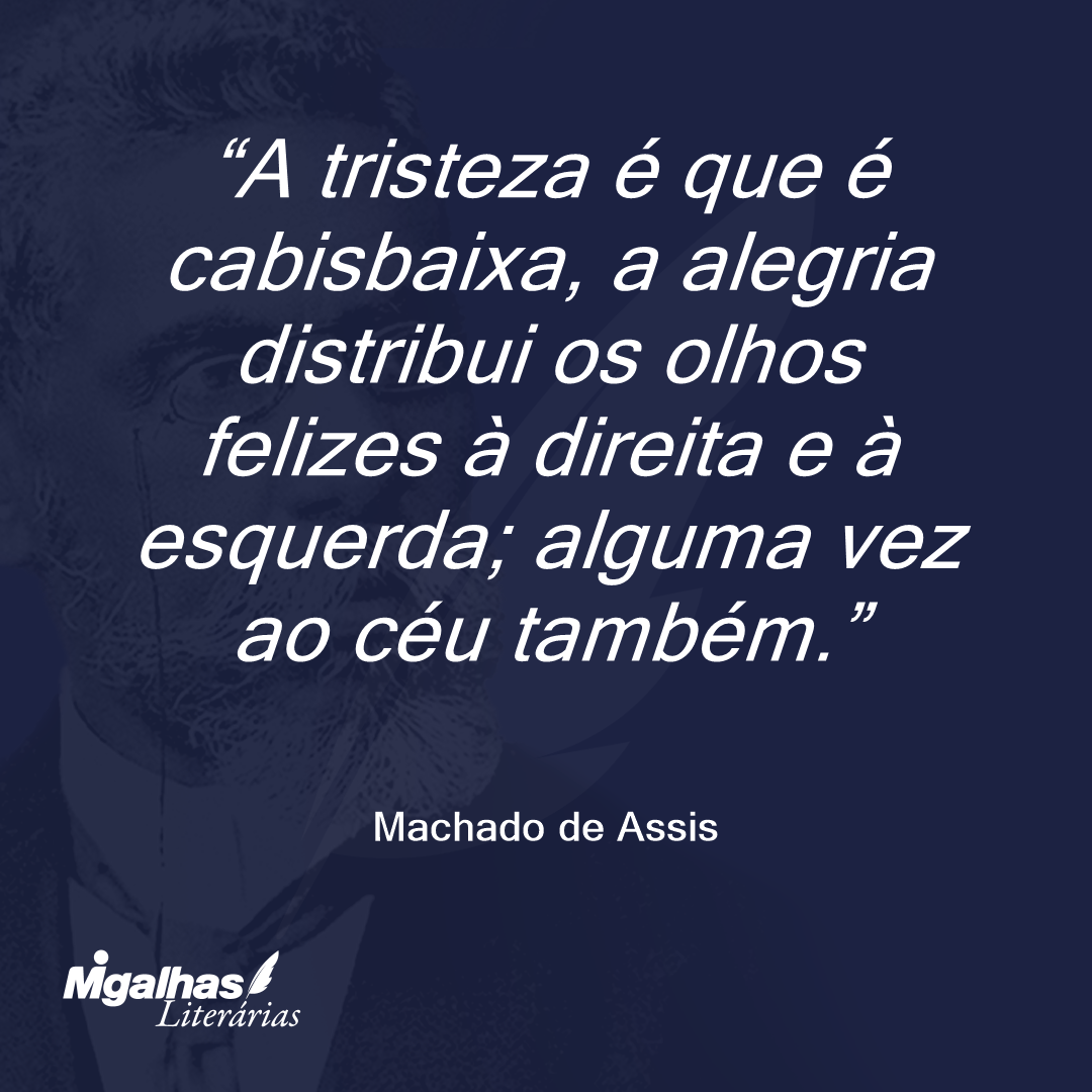 A tristeza é que é cabisbaixa, a alegria distribui os olhos felizes à direita e à esquerda; alguma vez ao céu também.