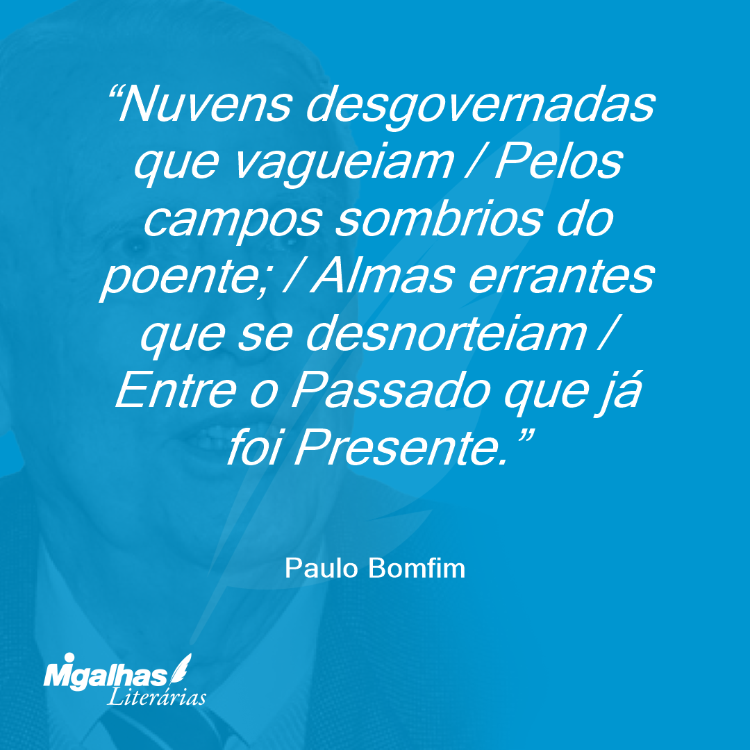 Nuvens desgovernadas que vagueiam / Pelos campos sombrios do poente; / Almas errantes que se desnorteiam / Entre o Passado que já foi Presente.