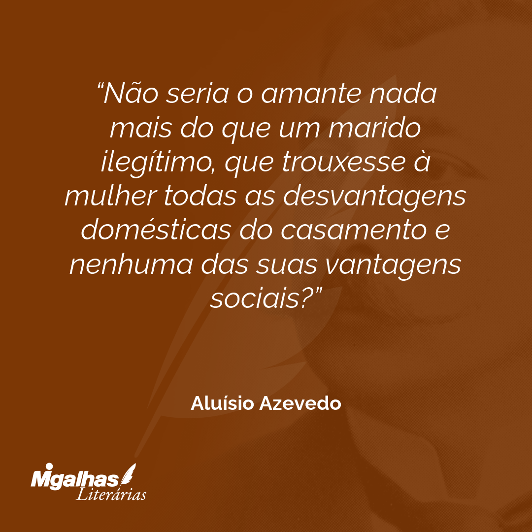 Não seria o amante nada mais do que um marido ilegítimo, que trouxesse à mulher todas as desvantagens domésticas do casamento e nenhuma das suas vantagens sociais?