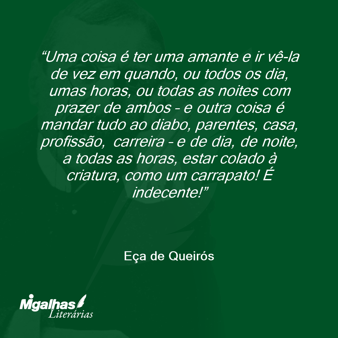 de vez em quando, ou todos os dia, umas horas, ou todas as noites com prazer de ambos – e outra coisa é mandar tudo ao diabo, parentes, casa, profissão, carreira – e de dia, de noite, a todas as horas, estar colado à criatura, como um carrapato! É indecente!