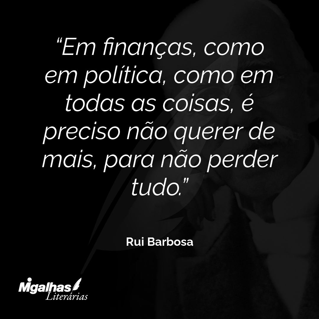 Em finanças, como em política, como em todas as coisas, é preciso não querer de mais, para não perder tudo.