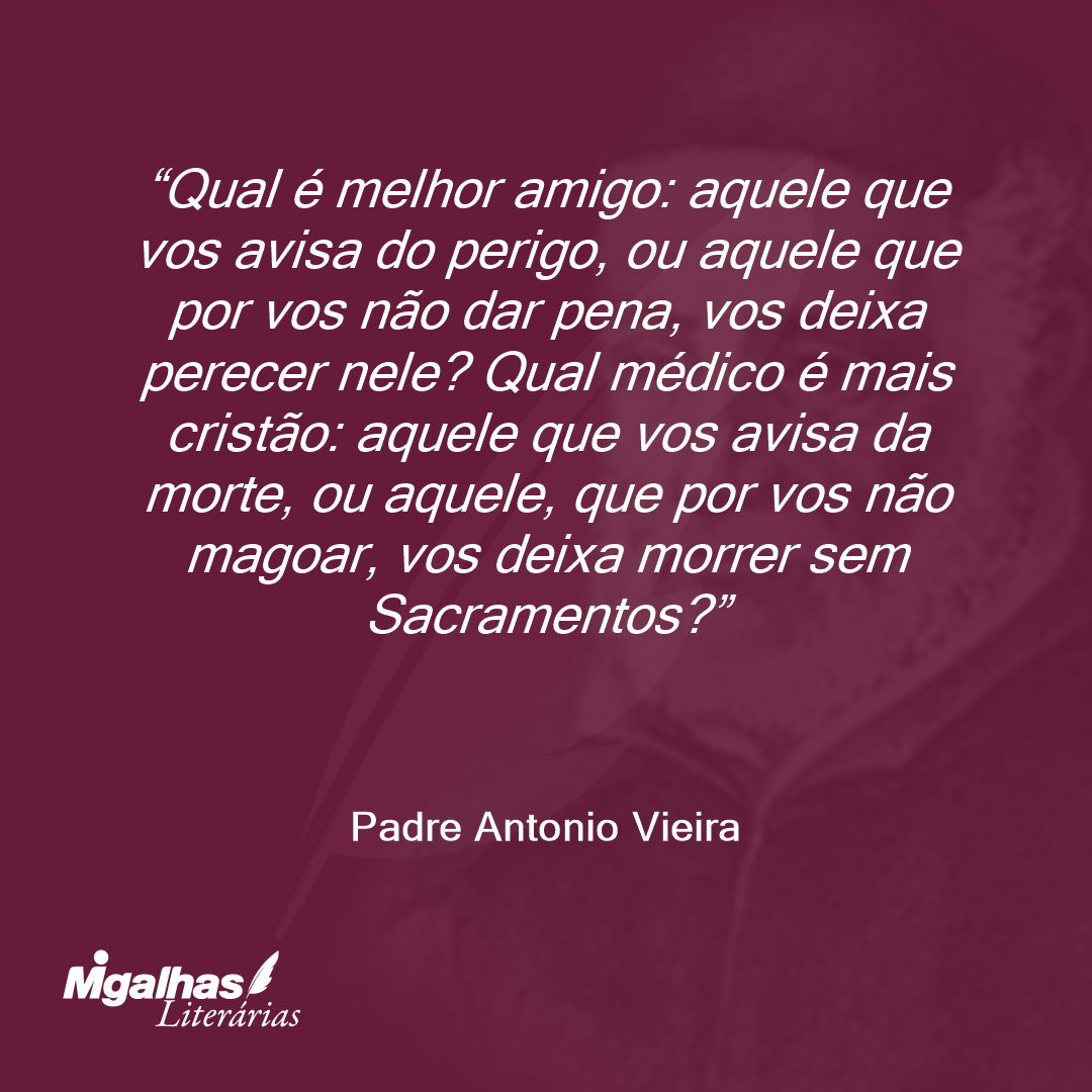 Qual é melhor amigo: aquele que vos avisa do perigo, ou aquele que por vos não dar pena, vos deixa perecer nele? Qual médico é mais cristão: aquele que vos avisa da morte, ou aquele, que por vos não magoar, vos deixa morrer sem Sacramentos?