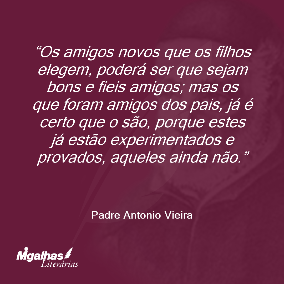 Os amigos novos que os filhos elegem, poderá ser que sejam bons e fieis amigos; mas os que foram amigos dos pais, já é certo que o são, porque estes já estão experimentados e provados, aqueles ainda não.