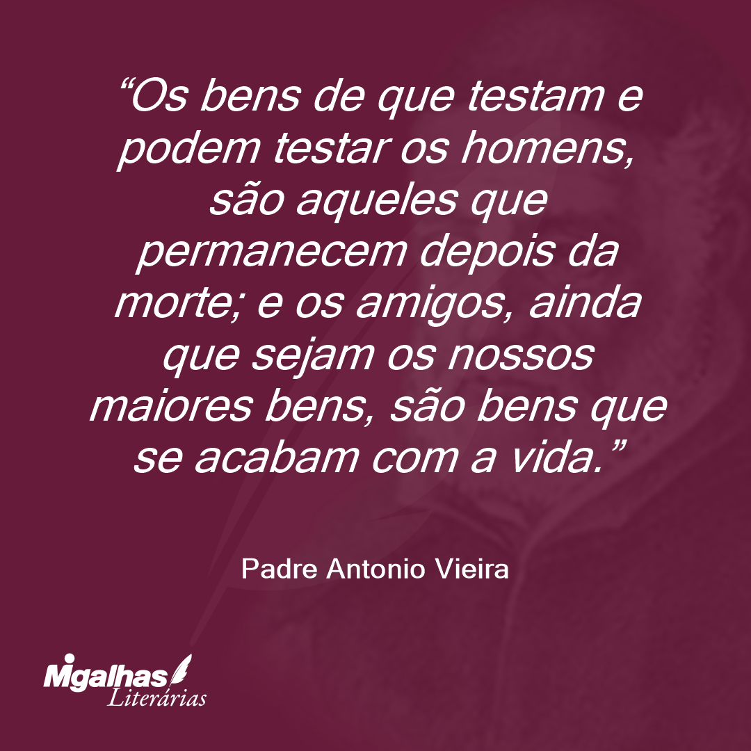Os bens de que testam e podem testar os homens, são aqueles que permanecem depois da morte; e os amigos, ainda que sejam os nossos maiores bens, são bens que se acabam com a vida.