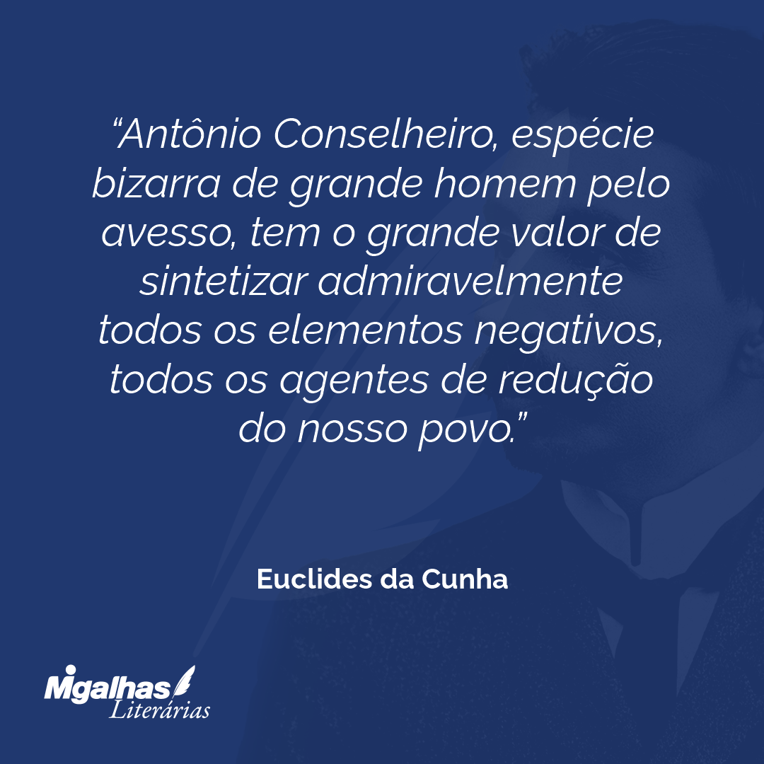 Antônio Conselheiro, espécie bizarra de grande homem pelo avesso, tem o grande valor de sintetizar admiravelmente todos os elementos negativos, todos os agentes de redução do nosso povo.