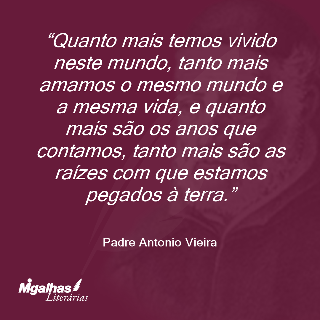 Quanto mais temos vivido neste mundo, tanto mais amamos o mesmo mundo e a mesma vida, e quanto mais são os anos que contamos, tanto mais são as raízes com que estamos pegados à terra.