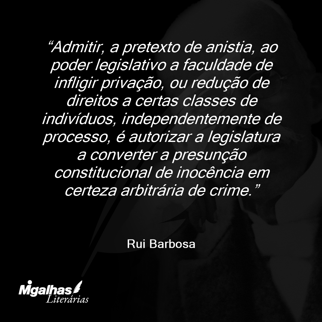 Admitir, a pretexto de anistia, ao poder legislativo a faculdade de infligir privação, ou redução de direitos a certas classes de indivíduos, independentemente de processo, é autorizar a legislatura a converter a presunção constitucional de inocência em certeza arbitrária de crime.
