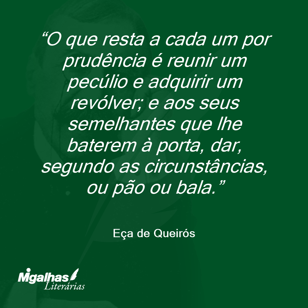 O que resta a cada um por prudência é reunir um pecúlio e adquirir um revólver; e aos seus semelhantes que lhe baterem à porta, dar, segundo as circunstâncias, ou pão ou bala.